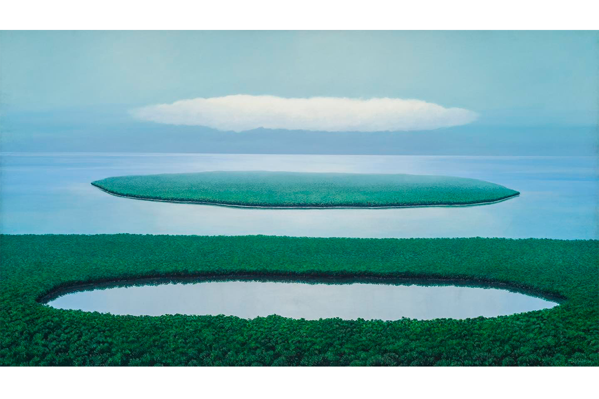"Relación entre la laguna, la isla y la nube" de Tomás Sánchez.
