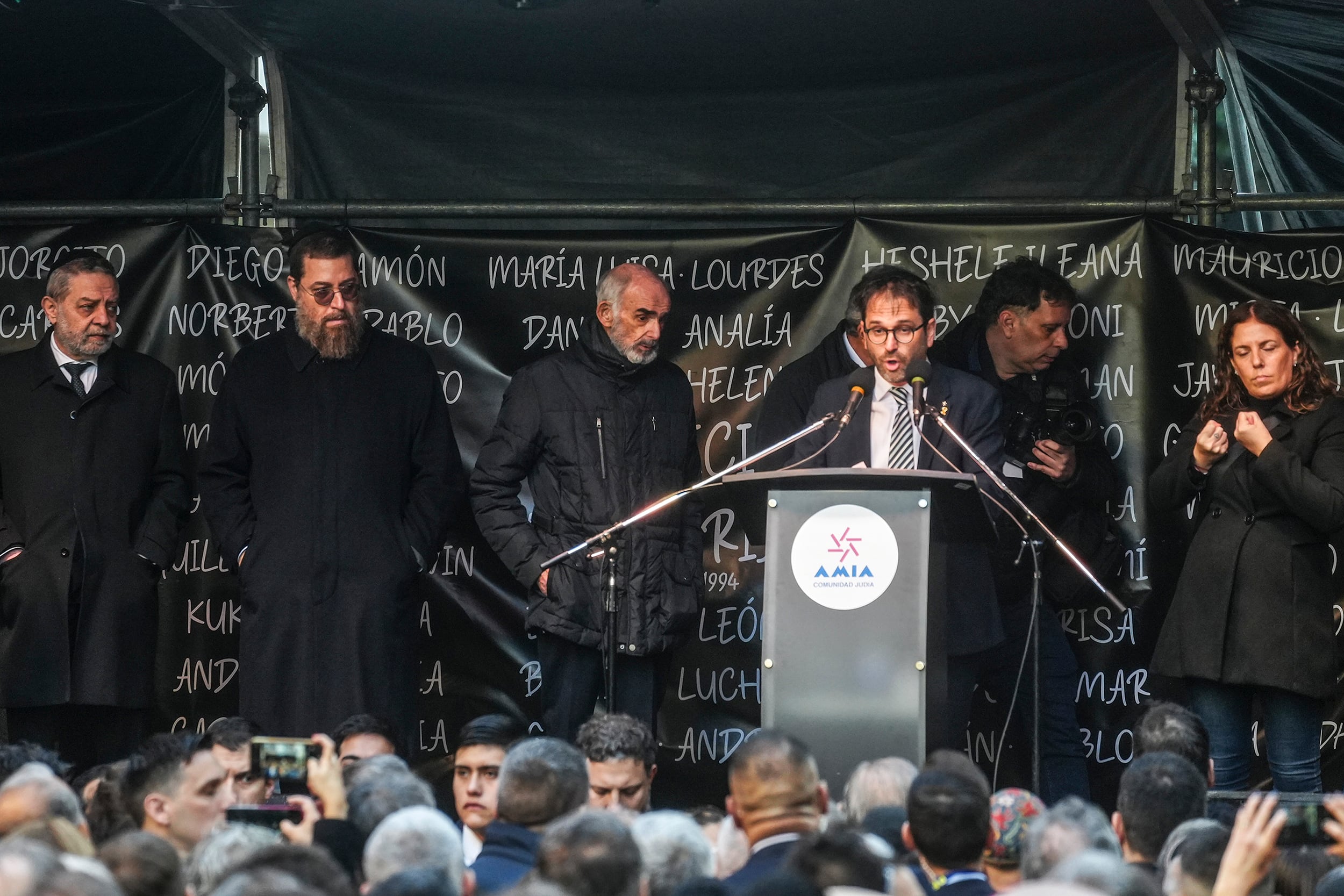 La agresión del presidente de la AMIA al feminismo y Unicef en el acto por los 30 años del atentado (Imagen: Twitter AMIA)