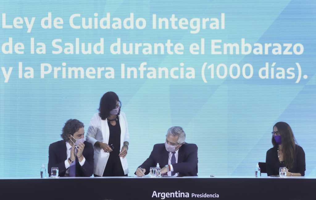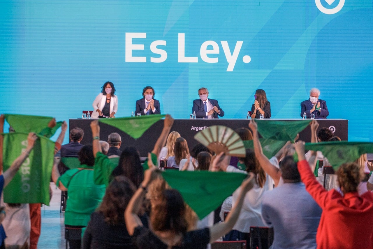 La firma fue en un acto al que asistieron activistas de la Campaña por el derecho al aborto, legisladoras, legisladores, funcionarios nacionales y referentes de la sociedad civil. "Es un día de felicidad para todos y todas porque estamos haciendo una sociedad un poco más justa", dijo el presidente.