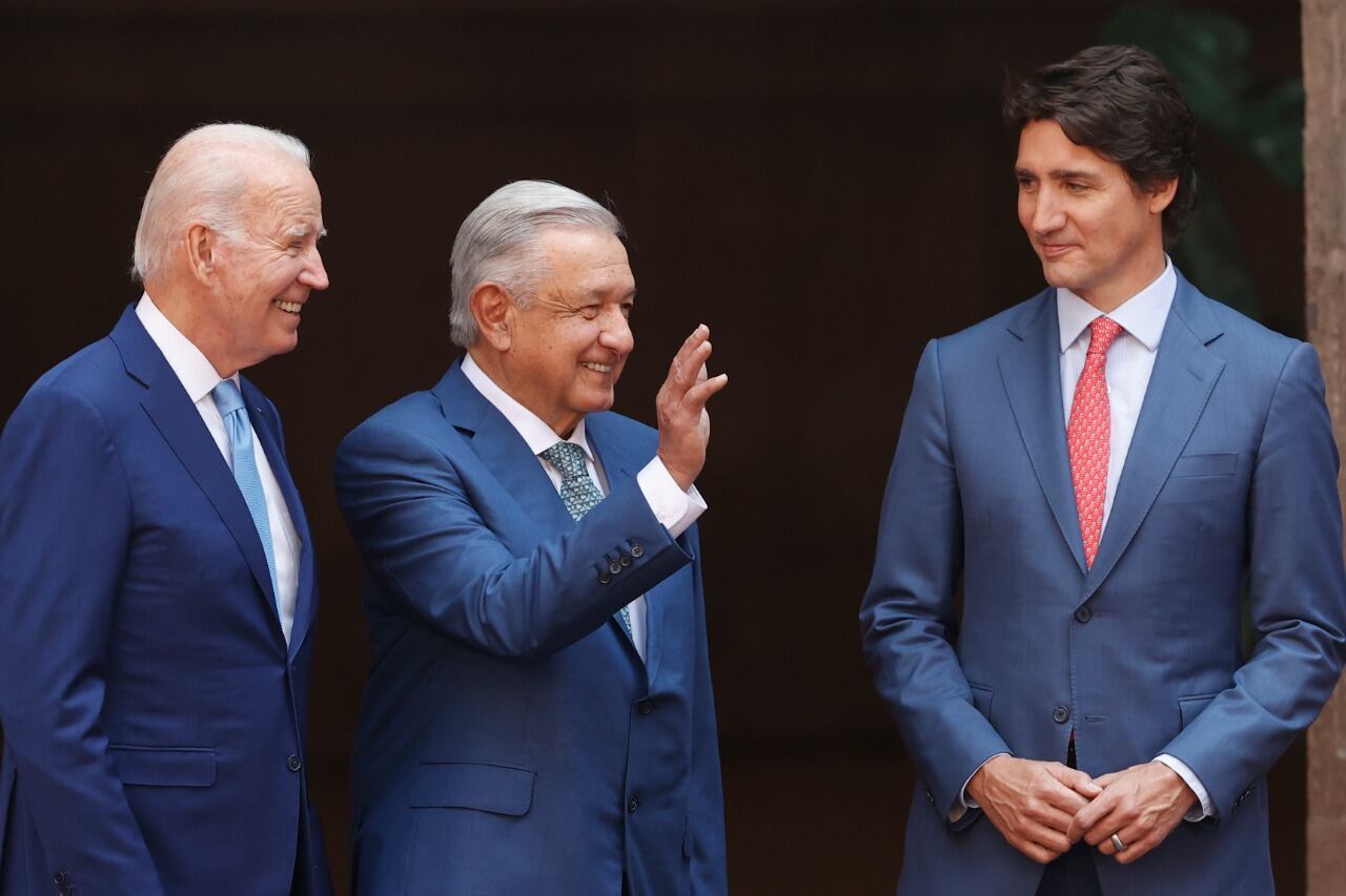 Los presidentes Joe Biden y Andrés Manuel López Obrador, y el primer ministro canadiense, Justin Trudeau, se encontraron este martes en el palacio presidencial en Ciudad de Méx
