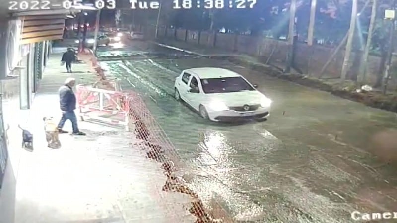 El hecho quedó registrado por las cámaras de seguridad del lugar. Allí se puede ver cómo el vehículo no logra avanzar en medio del cemento fresco.