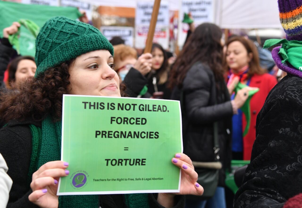 Organizaciones feministas y militantes convocadas por la Campaña Nacional por el Aborto Legal Seguro y Gratuito en Argentina realizaron esta tarde en la puerta de la Embajada de Estados Unidos u