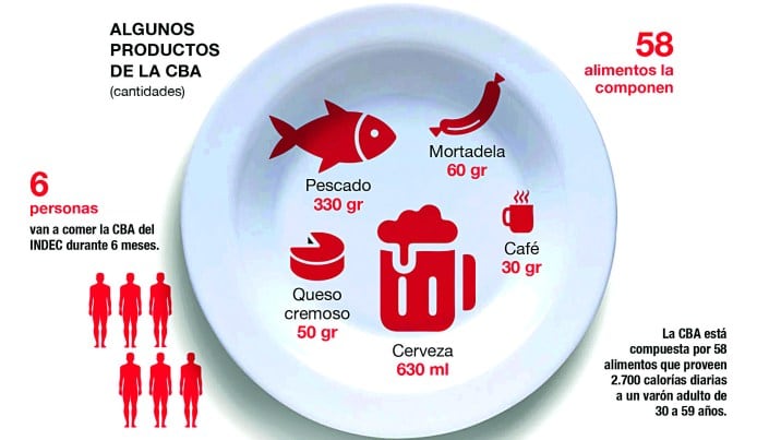 la canasta básica alimentaria (CBA), que establece la línea de indigencia, se ubicó en mayo en 44.499 pesos para una familia de cuatro integrantes.
