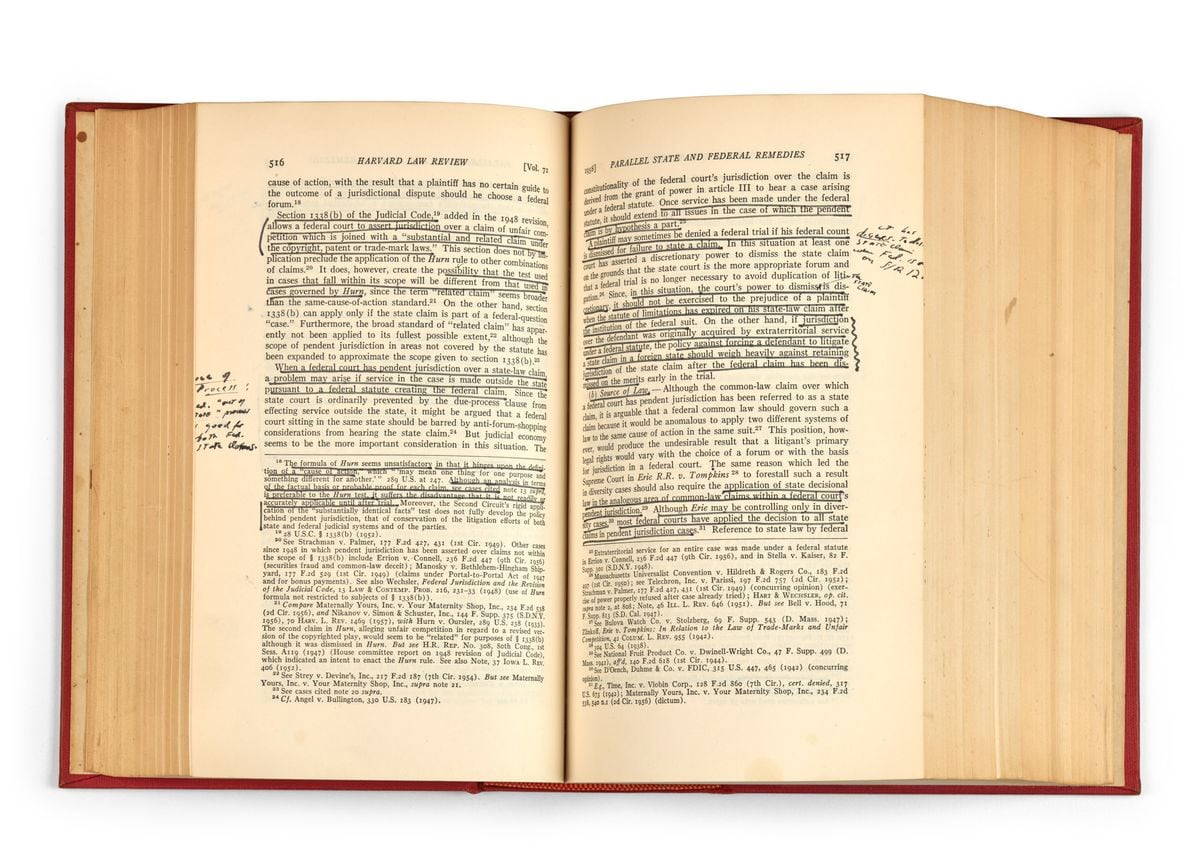 Sale a remate la enorme biblioteca de la legendaria Ruth Bader Ginsburg, la segunda mujer que llegó a la Corte Suprema de Estados Unidos. Toda una leyenda, el evento mezcla sus libros de texto, con comentario de puño y letra, con su enorme colección de literatura.