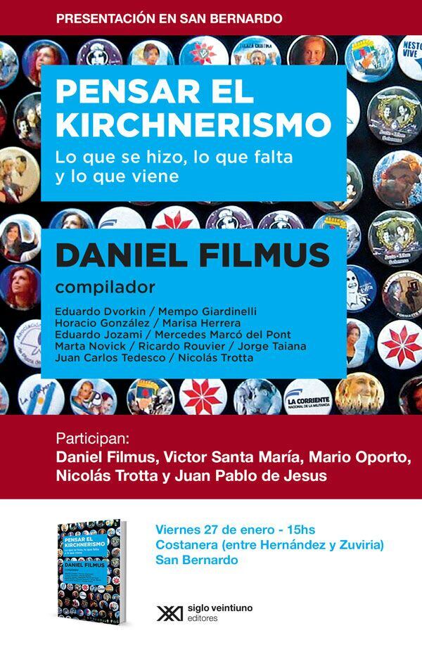 Daniel Filmus presenta esta tarde Pensar el kirchnerismo, el libro donde analiza el pasado, presente y futuro de la fuerza política. Habrá dos encuentros, uno en San Bernardo y otro en Mar del Plata.