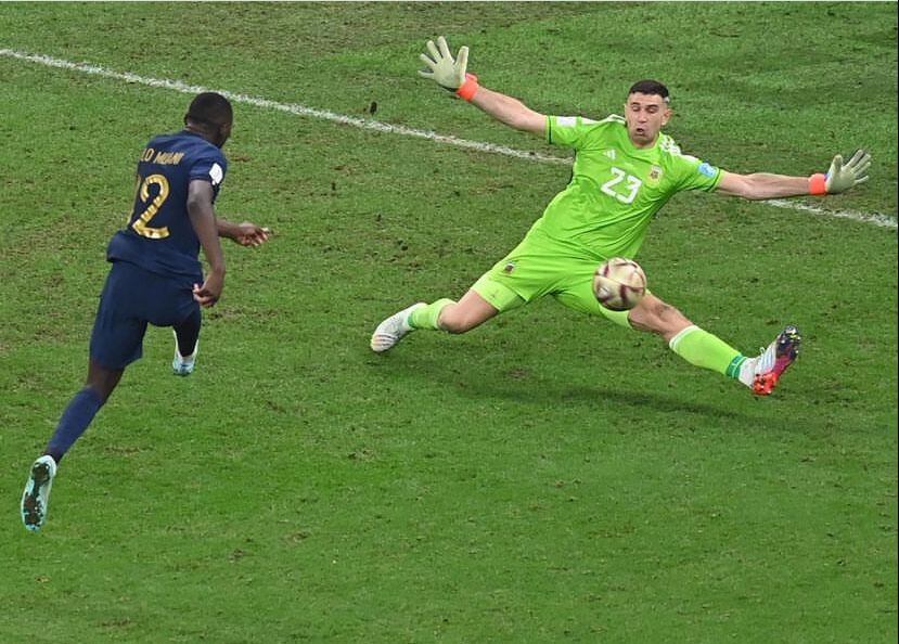 120 minutos. El árbitro adicionó tres minutos, pero ya van unos segundos más. La defensa argentina que intenta achicar pero la pelota le pasa a Otamendi y picando le quedó a Kolo Muani.