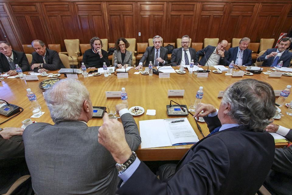 El presidente mantuvo una reunión esta tarde en la Residencia de Olivos con empresarios y representantes de distintos sindicatos en la que le expresaron su respaldo ante la propuesta de renegociaci