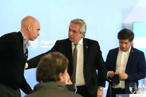 En conferencia de prensa desde la Residencia de Olivos y acompañado por el jefe de gobierno porteño Horacio Rodríguez Larreta y el gobernador bonaerense Axel Kicillof,