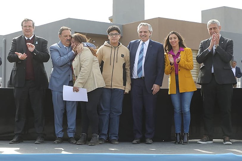 El presidente de la Nación, Alberto Fernández, el ministro de Desarrollo Territorial y Hábitat, Jorge Ferraresi, y la gobernadora de Río Negro, Arabela Carreras, entregaron est