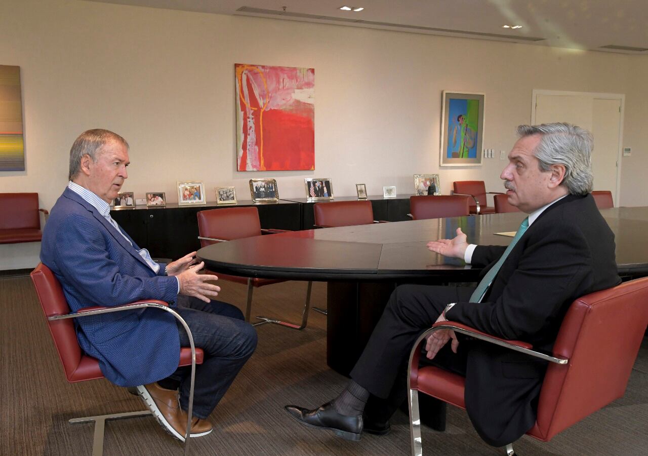 El gobernador de Córdoba, Juan Schiaretti, se reunió con el ministro del Interior, Eduardo "Wado" de Pedro, quien lo recibió en su despacho de Casa Rosada.