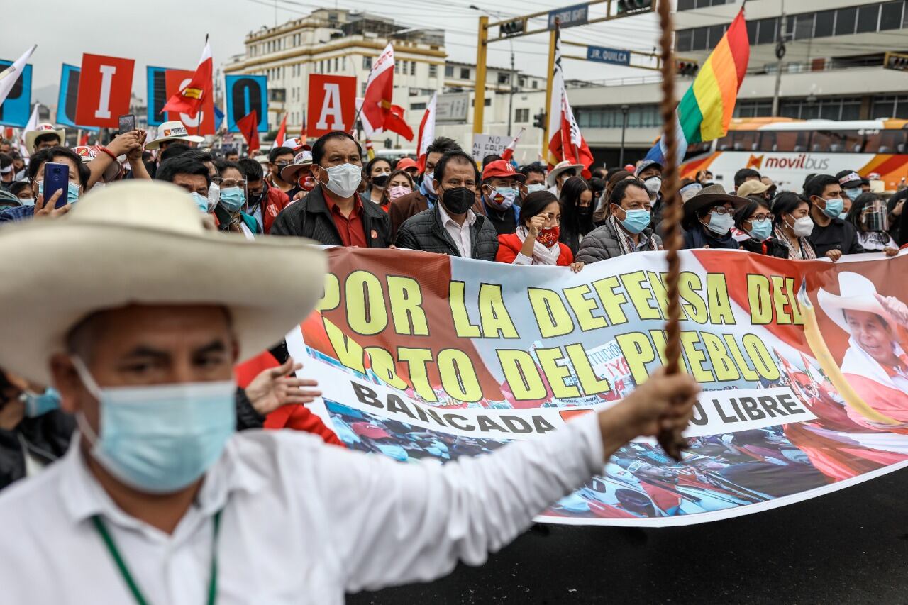 “Democracia sí, golpe no”, gritaron los seguidores de Pedro Castillo