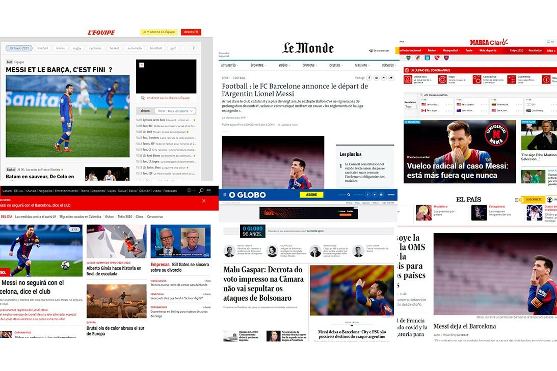 Los diarios de todo el mundo pusieron en portada la noticia de la salida de Lionel Messi del Barcelona.