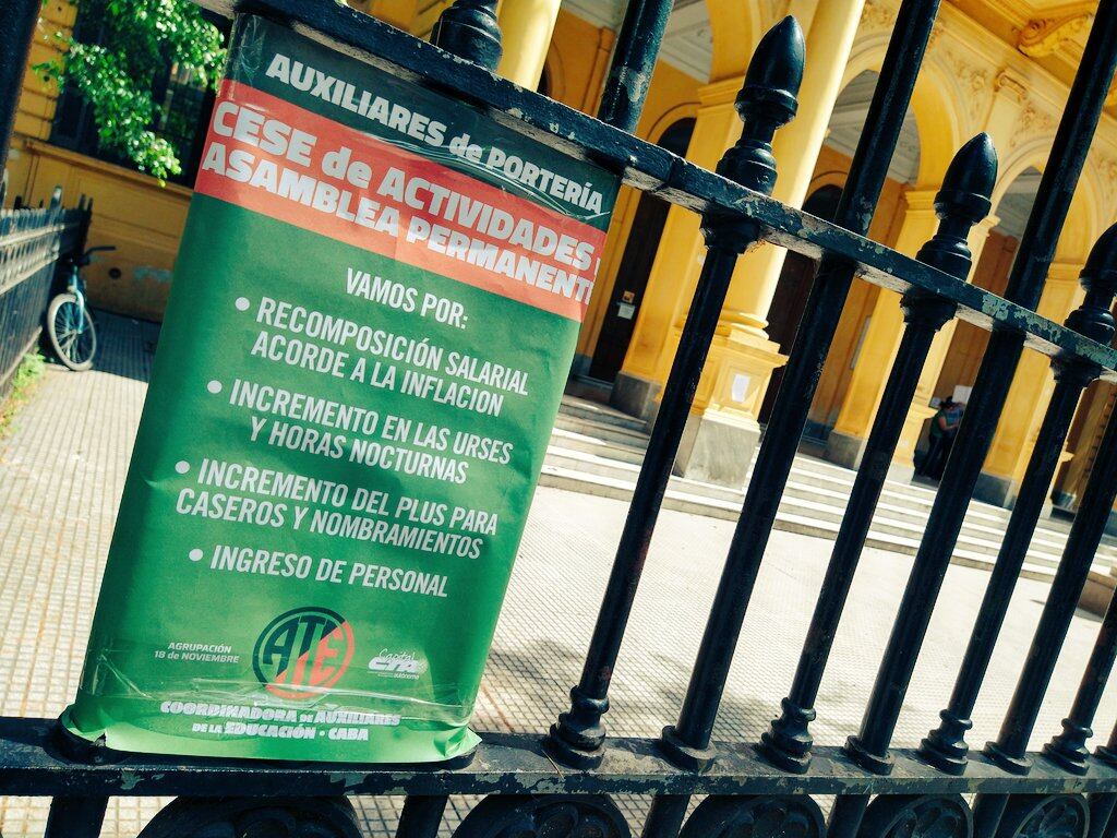 Las autoridades cerraron el colegio porque no esta garantizada la higiene del lugar. El personal auxiliar realiza un cese de actividades con distintos reclamos.