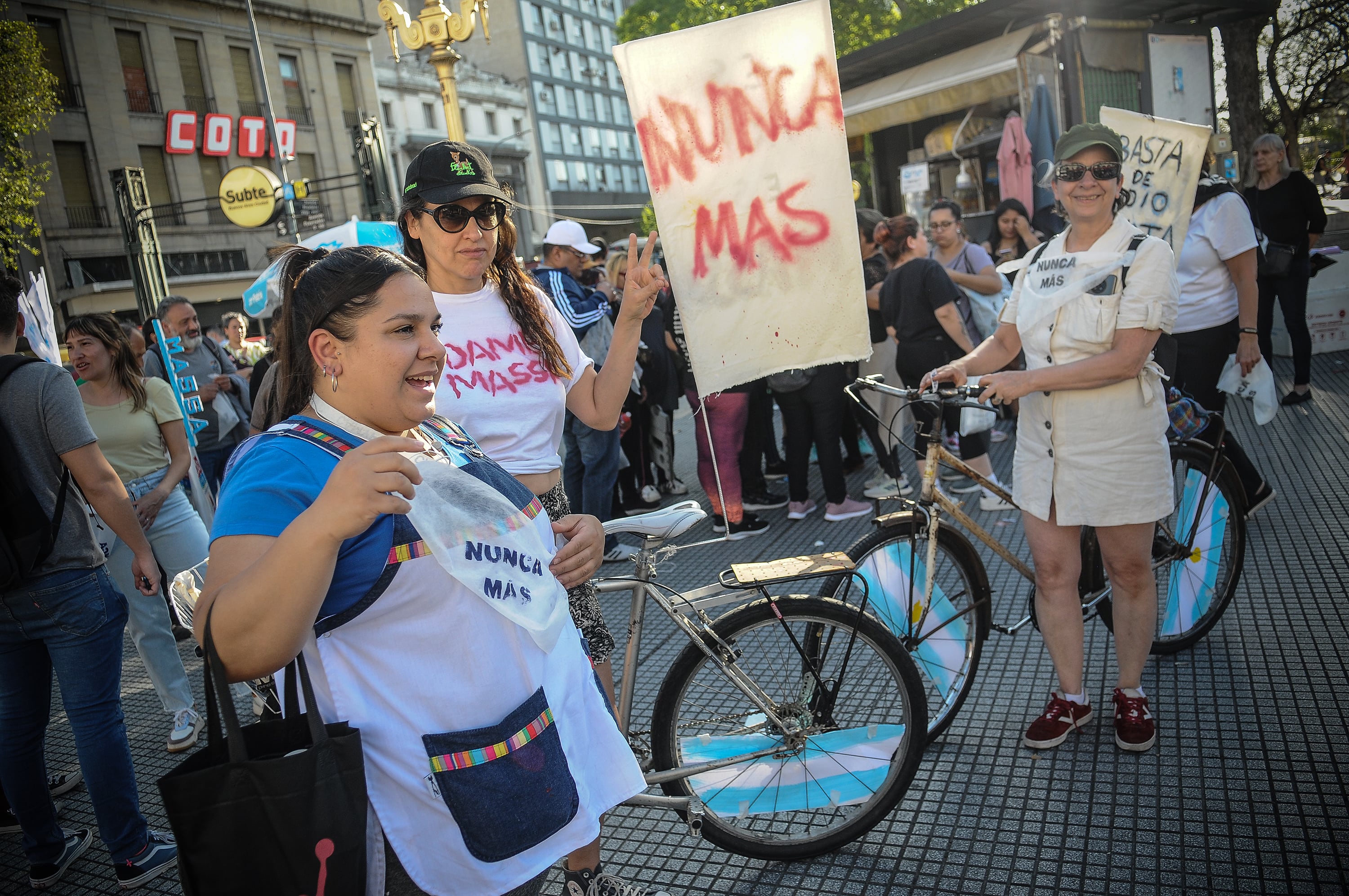 En distintos puntos de CABA, militantes de derechos humanos hicieron "pañuelazos" y advirtieron sobre los peligros que entrañaría un triunfo de Javier Milei en el balotaje.