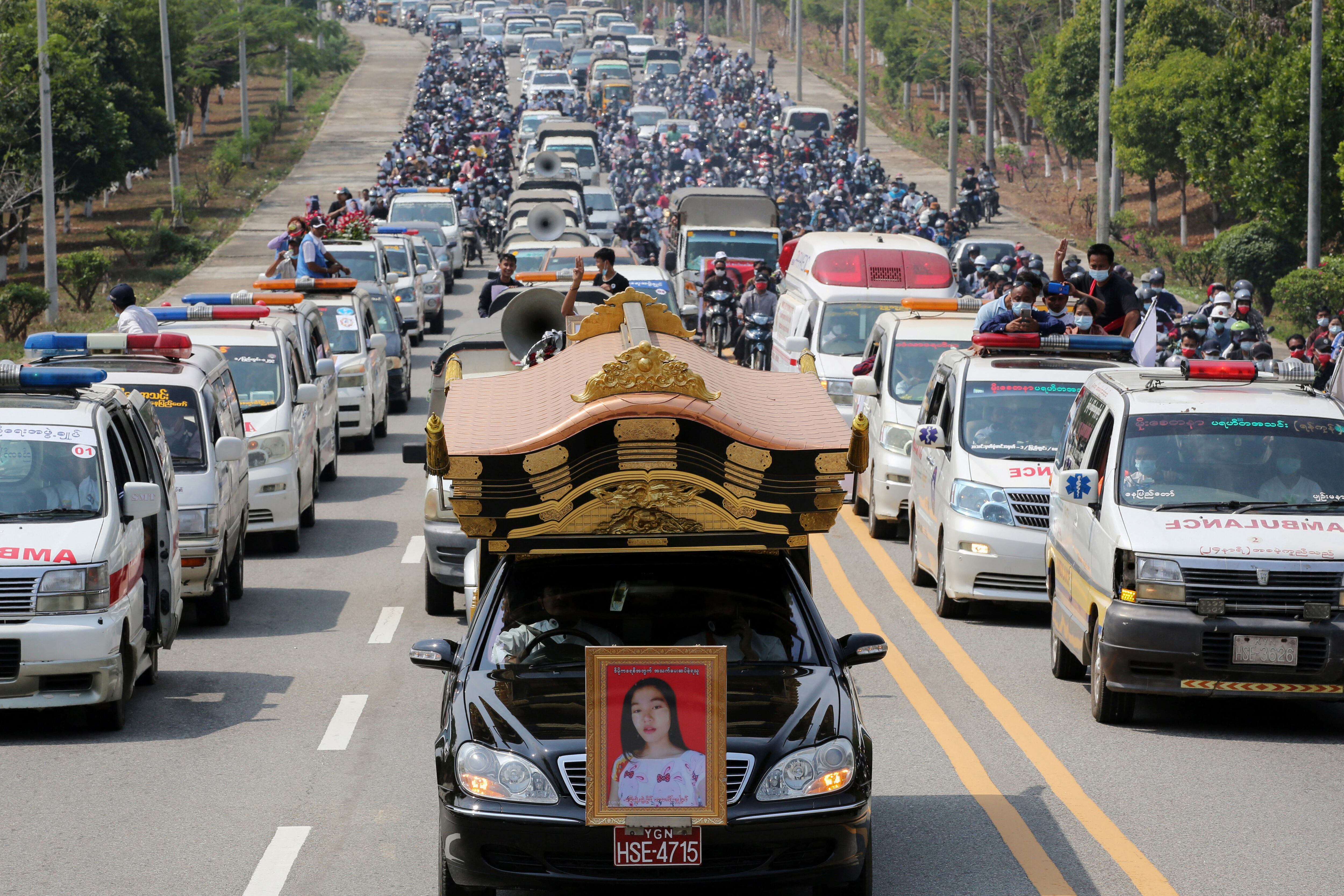 Masivo funeral de la primera víctima del golpe de Estado en Myanmar