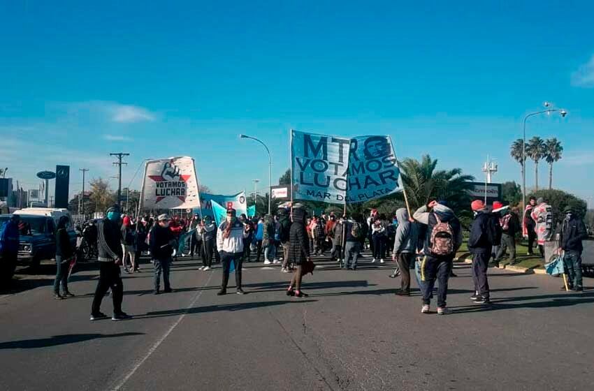 En las horas previas al inicio del fin de semana largo, se registra un corte total de tránsito en la Ruta 2, en el acceso a la ciudad de Mar del Plata, por organizaciones sociales que piden