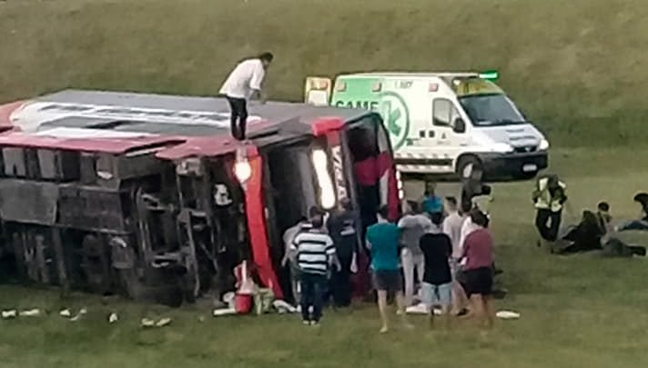 Dos personas murieron y más de 30 resultaron heridas, tres de ellas de gravedad, al volcar un micro de pasajeros de larga distancia en la autovía 2, a la altura del puente Samborombón.
