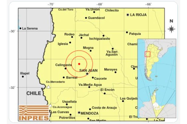 El Instituto Nacional De Prevención Sísmica (INPRES) reportó este miércoles por la madrugada un sismo de 5.3 grados