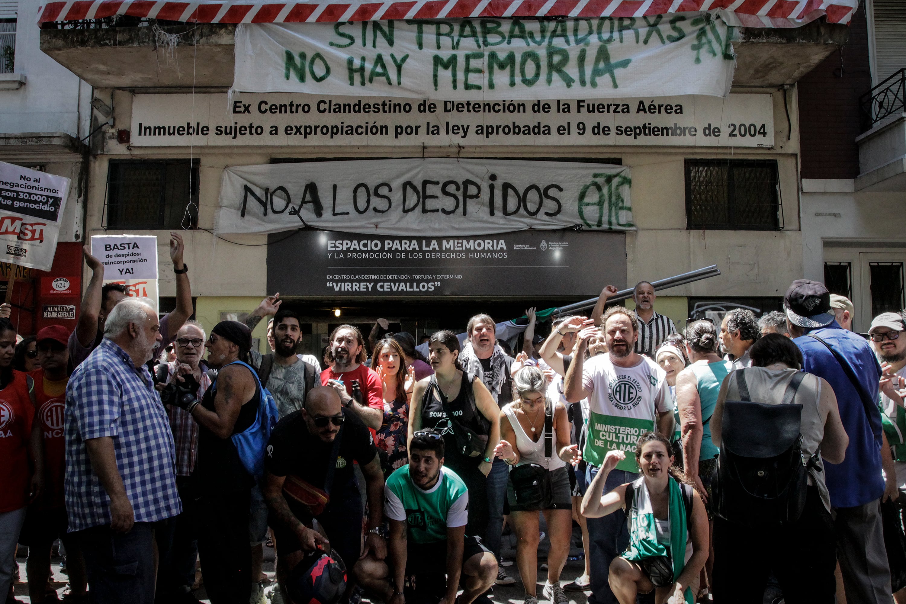 Desde su llegada al gobierno, LLA despidió a 28 de los 65 trabajadores de los ex sitios de memoria de gestión Nacional. El impacto se concentró sobre todo en los ex CCD porteños y no fueron despidos al voleo sino sobre áreas estratégicas para su funcionamiento como conversación, mantenimiento y visitas. La Red de Sitios reclamó ante la CIDH. "Riesgo de cierre" ante el recorte de financiamiento y de planta.
