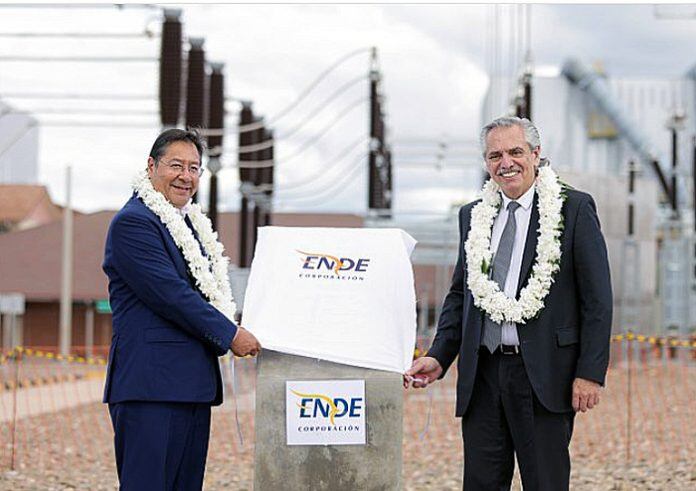 Alberto Fernández y Luis Arce inauguraron el electroducto Juana Azurduy