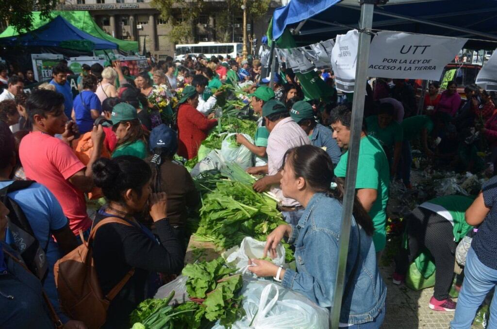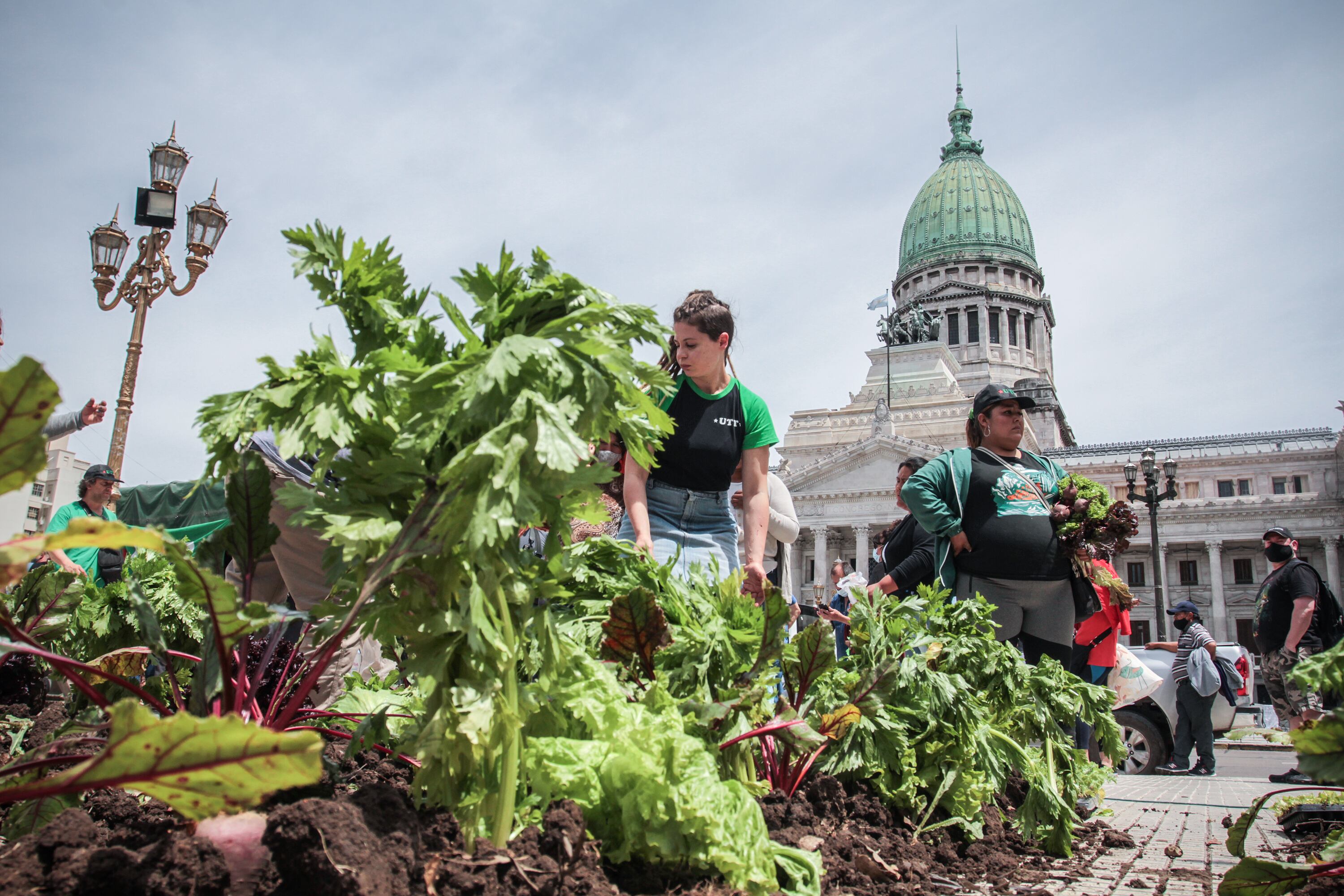Con un Verdurazo frente al Congreso en el que regalaron 10 mil kilos de mercadería, los productores de la UTT reclamaron a los diputados que den tratamiento a la Ley de acceso a la tierra.