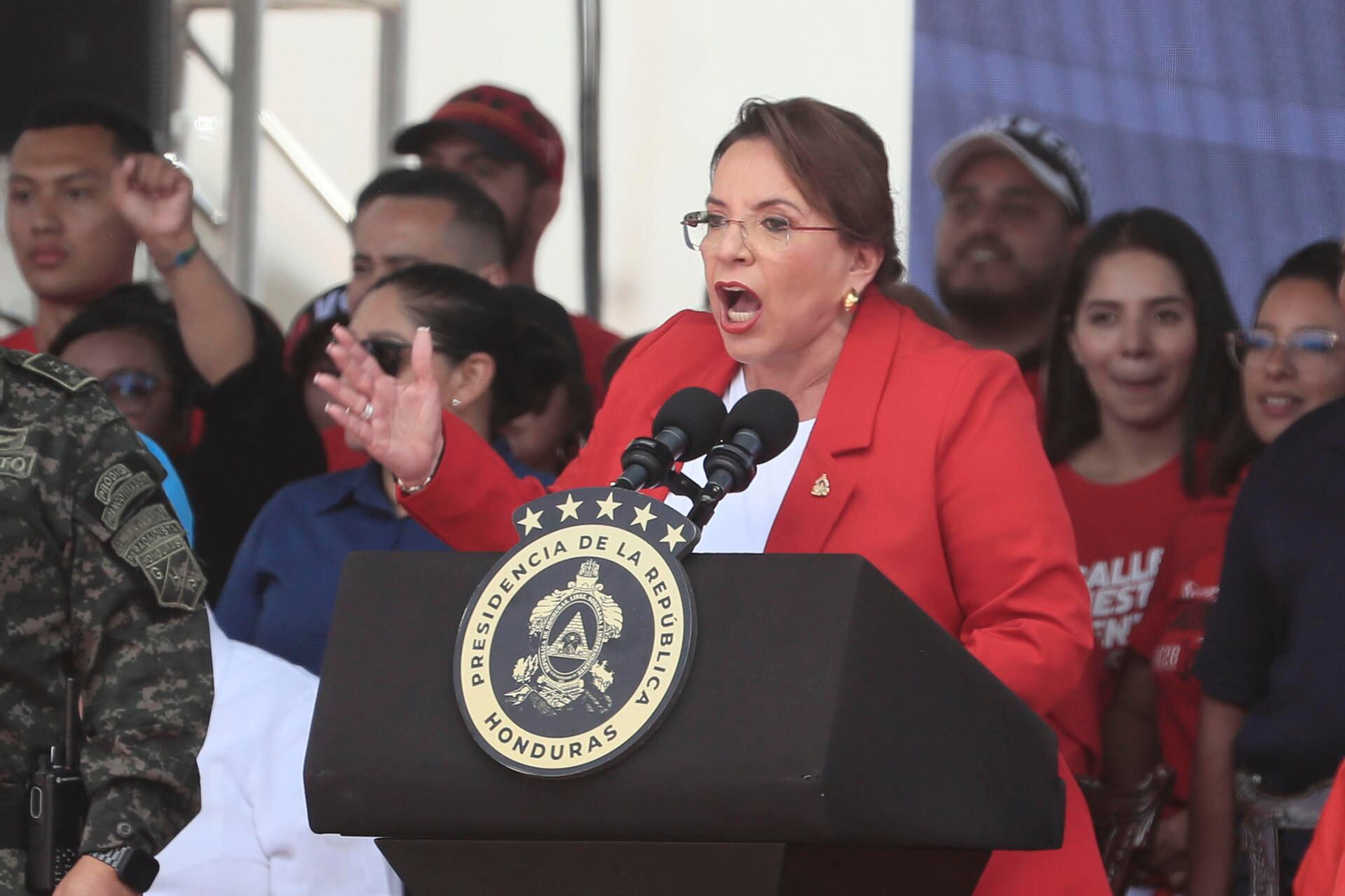 La presidenta hondureña, Xiomara Castro, afirmó que la paz y la seguridad interior de Honduras están en riesgo ante la persistencia de un plan para destruir su Gobierno, liderado por las